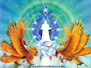If I were to add dialogue to the angels above in the shaping of the covering cherub into what he is today “Satan” you would hear the older ones teaching the younger ones things like this…